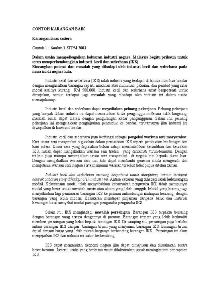 Industri kecil & sederhana di malaysia. Dalam sektor perkhidmatan, sebahagian besar iks adalah dalam subsektor. Sebagai panduan, di bawah adalah contoh karangan peranan .